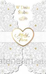 Kartka Dream Cards "W dniu Ślubu" DK-1026 Kartka B6 z ozdobnej serii Dream Cards na ślub - nieduża, ale robi wrażenie dzięki atrakcyjnej kolorystyce i ciekawym zdobieniom. To idealny wybór łączący przyjazną cenę z jakością. Cechy szczególne: wielkość: B6, 16.6 x 11.7 cm po złożeniu, koperta: w zestawie, kolorowa, zdobienia: kolorowe, różnorodne, bogate (w zależności od wzoru: przyklejane dekoracje, elementy biżuteryjne, odstawniki, brokat metaliczne folie, tłoczenia itp.), okazja: Ślub