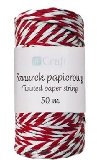 Skręcany sznurek papierowy w kolorach czerwonym i białym, idealny do różnych prac kreatywnych oraz okazyjnego pakowania prezentów.