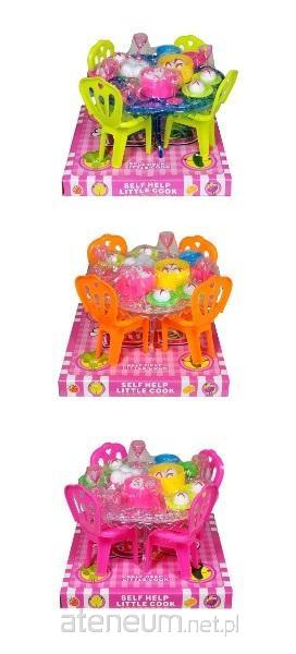 Mebelki dla lalek: stół, 6 krzesłek, akcesoria MIX