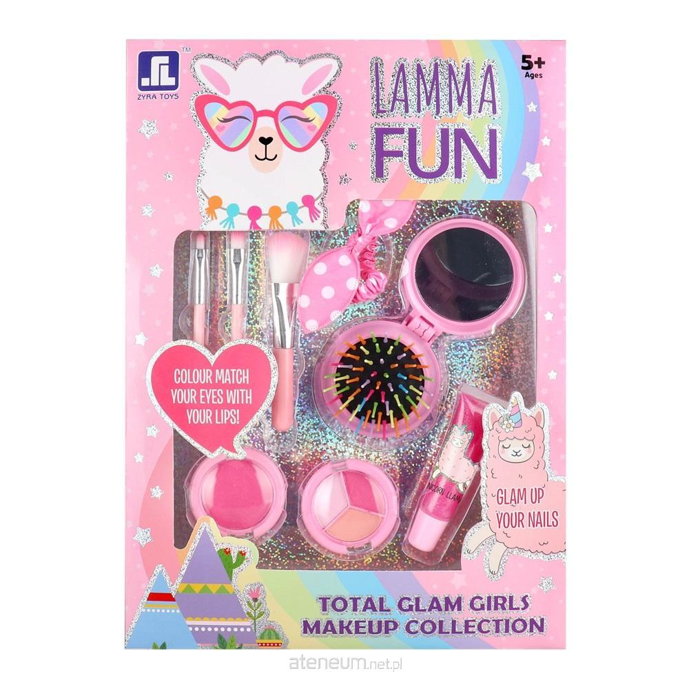 Zestaw składa się z cieni, błyszczyka, pudru, pędzelków do malowania, składanej szczotki z lusterkiem oraz gumki do włosów. Wymiary opakowania: 33 x 4 x 23.5 cm