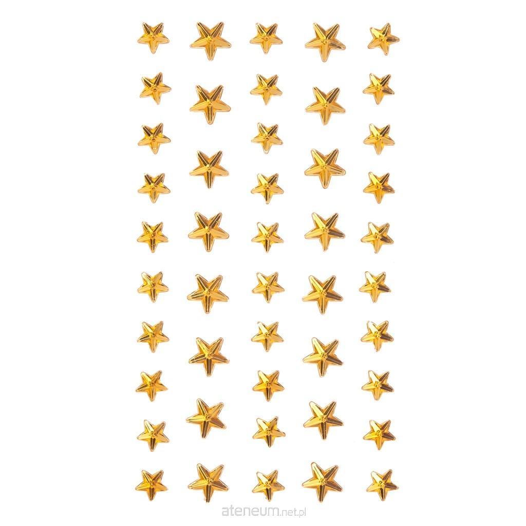 Kryształki samoprzylepne w kształcie gwiazdek to piękny dodatek do projektów kreatywnych na rozmaite okazje. Opakowanie zawiera złote gwiazdki w dwóch rozmiarach.