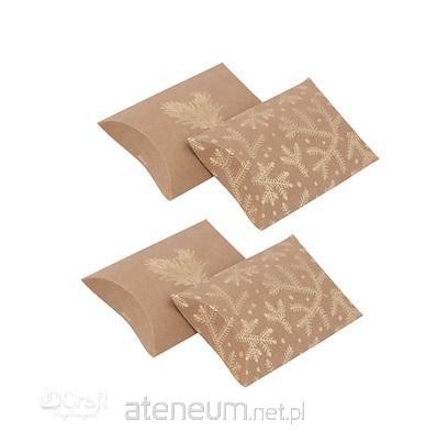 Pudełka składane typu pillow box z motywem złotych gałązek sosny sprawdzą się idealnie jako opakowania na świąteczne prezenty. Można schować do nich m.in. biżuterię, vouchery podarunkowe lub inne, drobne upominki. Te tekturowe pudełka nadają się również do dodatkowego zdobienia np. naklejkami, drewnianymi elementami lub wstążeczkami. Pudełeczka są do samodzielnego złożenia.