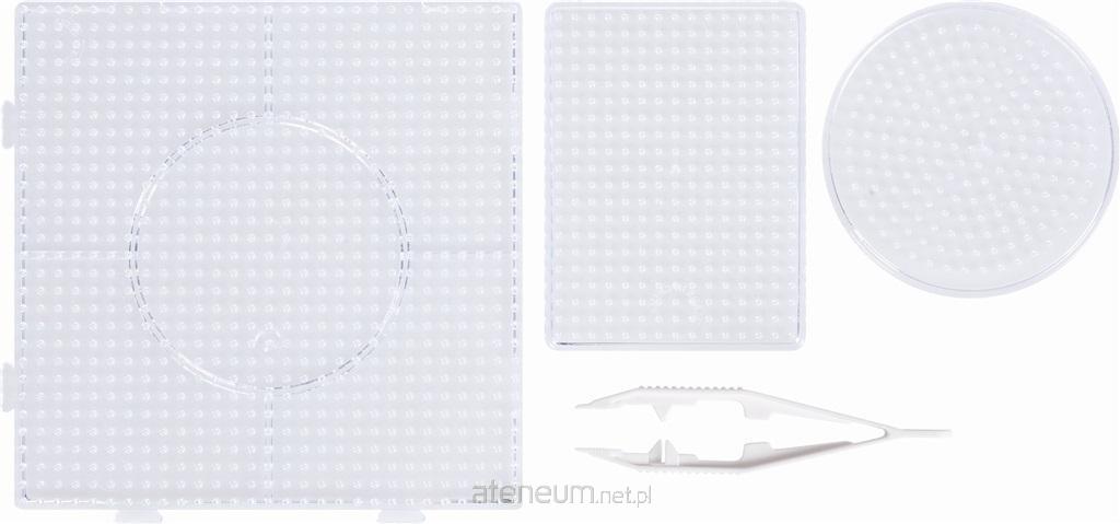 Kwadrat, prostokąt, kółko, pęseta do koralików.