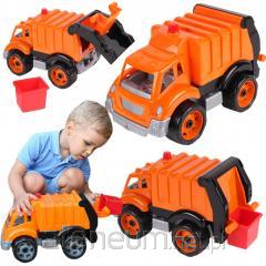 Autko śmieciarka w pięknym pomarańczowym kolorze to zabawka idealnie nadająca się do piaskownicy lub do zabawy w domu. Zabawka przeznaczona dla dzieci powyżej 2 lat. W zestawie pojazd oraz figurka kierowcy. Zabawki z tej serii produkowane są z wysokiej jakości materiałów o dużej wytrzymałości mechanicznej. Pojazd jest w pełni funkcjonalny mechanicznie. Zaletą są piękne, żywe kolory odporne na blaknięcie. Koparka idealnie sprawdzi się w piaskownicy, na plaży, na placu zabaw oraz w domu. Śmieciarka posiada ruchome elementy: podnoszoną kabinę kierowcy oraz odpinany kontener z koszem.