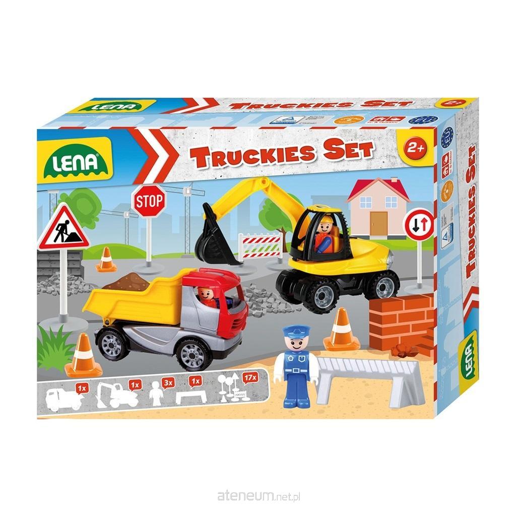 Plac budowy LENA Truckies składa się z wywrotki i koparki, zestawu znaków drogowych LENA z 17 częściami i naklejkami, figurki policjanta oraz blokady drogowej. Umożliwia pomysłowe odgrywanie ról. Dzięki temu zestawowi dziecko ma możliwość kreatywnej i ciekawej zabawy na wiele godzin.