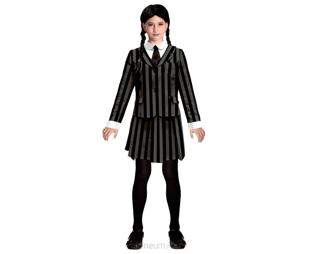 ZESTAW DLA DZIECI GOTYCKA UCZENNICA Rozmiar: 120/130 cm Materiał: poliester Zestaw zawiera: żakiet, spódnica w paski Ilość sztuk w opakowaniu: 1
