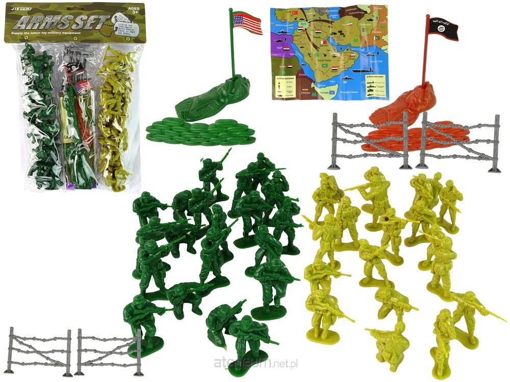 Zestaw Militarny 51 Elementów Zielony Wprowadź swoje dziecko w dynamiczny świat militarnych przygód. Ten fascynujący zestaw figurek wraz z akcesoriami, przeniesie maluchy w pełne akcji sceny, gdzie odgrywanie roli dowódcy lub żołnierza staje się niezwykłą zabawą. Figurki reprezentują różnorodne postawy żołnierzy, co pozwala tworzyć nieskończoną ilość scenariuszy i akcji. Rozmieszczone w rozmaitych pozycjach, od stojących po kucające, gotowi są do przeprowadzania strategicznych operacji. Występują one w dwóch kolorach: jasny i ciemny zielony. Dzieci mogą tworzyć zespoły w zależności od ich roli i taktyki, a także w oparciu o różnice kolorystyczne. Figurki są starannie wykończone, z dbałością o najmniejsze detale, co nadaje im autentyczny i ekscytujący wygląd. W zestawie znajdują się również akcesoria, takie jak: piramidy, murki, płotki, flagi oraz mapa, dzięki którym zabawa staje się jeszcze bardziej ciekawa. Wasze pociechy będą mogły tworzyć niezwykłe scenariusze oraz poczuć się jak na polu bitwy, ukrywając się za murami. Zabawka została wykonana z wytrzymałego plastiku, gwarantując trwałość. Odkręcane opakowanie, w którym się znajdują, jest praktycznym rozwiązaniem pozwalającym na przechowywanie zestawu. To doskonała okazja, by pobudzić wyobraźnię swojego dziecka i stworzyć epickie opowieści w miniaturowym świecie wojskowych operacji. Dzięki różnorodności pozycji, kolorów i możliwości tworzenia akcji, ta zabawka gwarantuje godziny fascynującej zabawy i rozwijania kreatywności. Elementy zestawu: - figurki żołnierzy - 2 piramidy - 2 murki - 4 płotki - 2 flagi - mapa Wymiary figurek: Wysokość: około 4 cm Wymiary opakowania: 20 cm x 33 cm x 3 cm Posiada certyfikat CE, ponadto jest zgodny z normą EN71. Zabawka przeznaczona jest dla dzieci powyżej 3 roku życia.