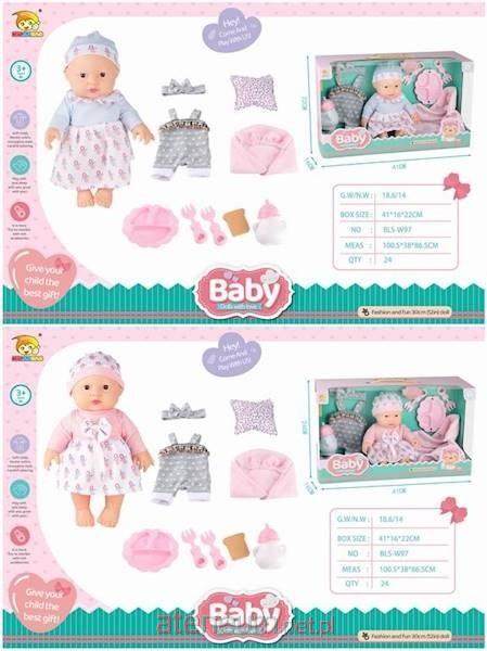 Lalka winylowa Bobas Nica z różowym kocykiem 40cm