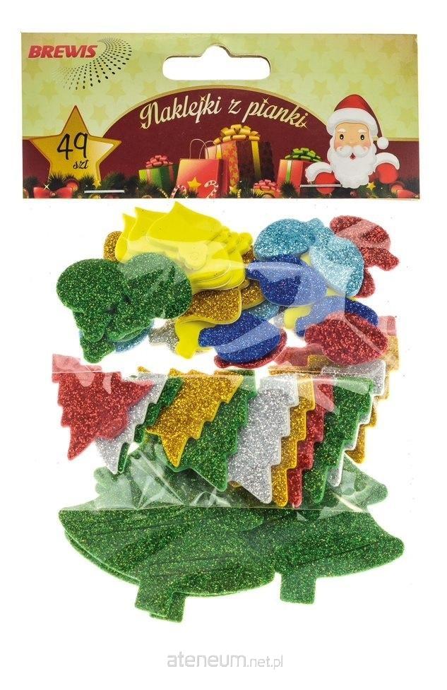 Naklejka z pianki z brokatem nazwa: choinki i bombki ilość: 49 szt