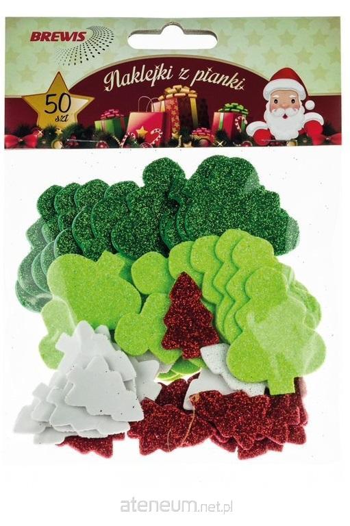 Naklejki z pianki choinki z brokatem 50szt