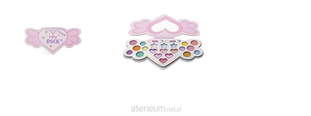 Paleta do dziecięcego makijażu w kształcie serca ze skrzydłami i z lustrem w zestawie. Zestaw zawiera: 12 cieni do powiek, 9 błyszczyków do ust, 2 aplikatory.