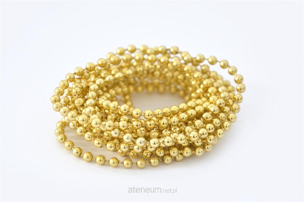 Łańcuch perełki - dekoracja choinkowa, długość ok. 270 cm. Średnica jednej perełki ok. 6 mm. Kolor złoty.