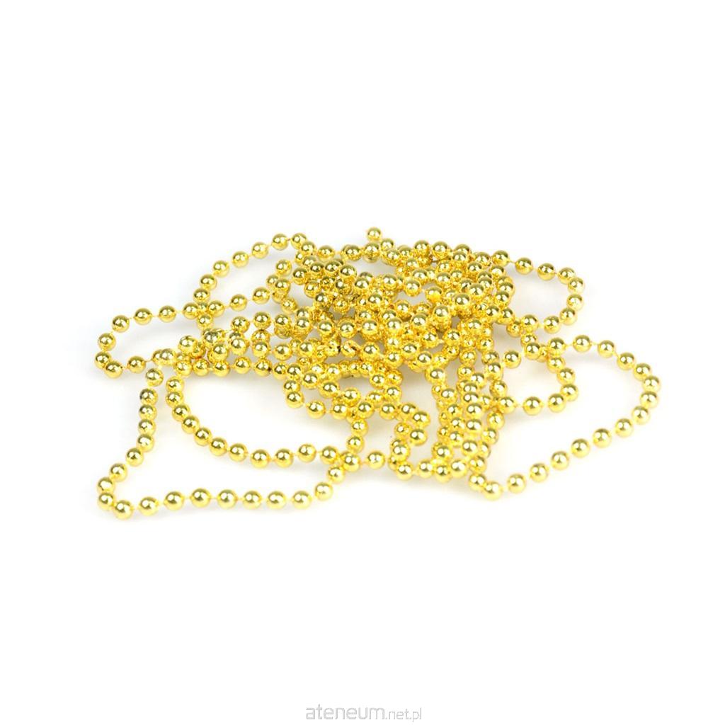 Łańcuch perełki - dekoracja choinkowa, długość ok. 270 cm. Średnica pojedynczej perełki ok. 4 mm. Kolor złoty.
