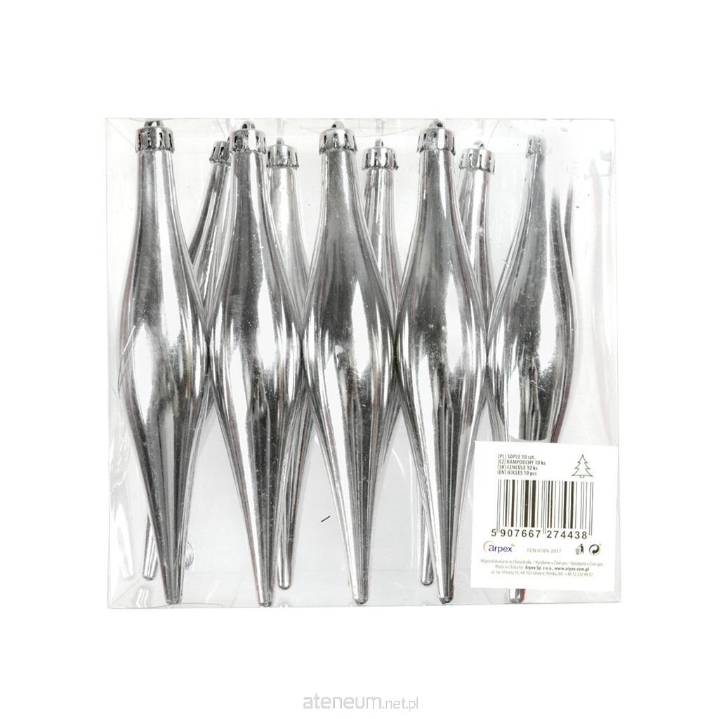 Plastikowa ozdoba świąteczna do zawieszenia w kształcie sopli, wykonana z PCV o wymiarach 15cm, w opakowaniu 10szt, w kolorze srebrnym.