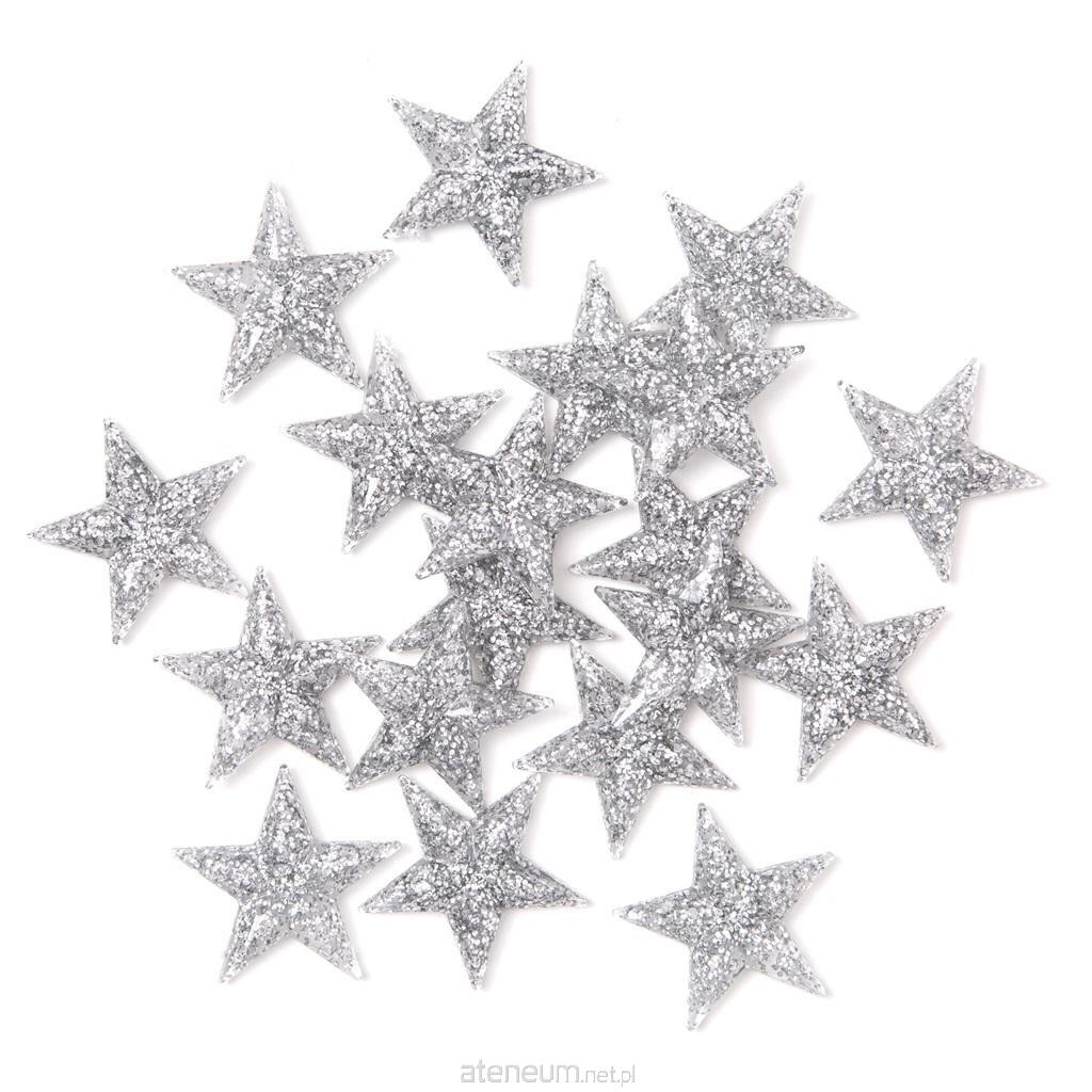 Samoprzylepne gwiazdki z zatopionymi drobinkami srebrnego brokatu, które wspaniale mienią się w świetle.