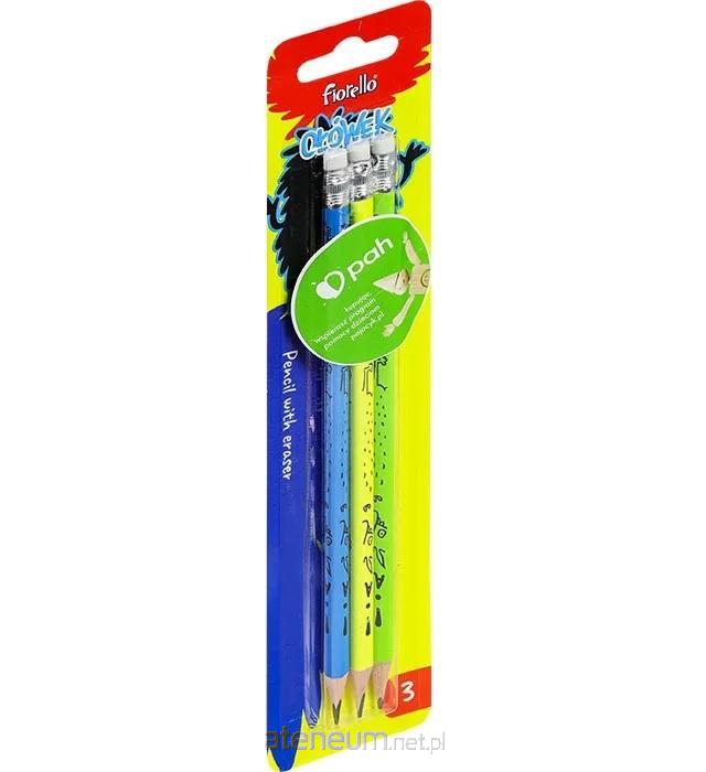 Ołówek trójkątny z gumką i nadrukiem 3szt. KIDEA