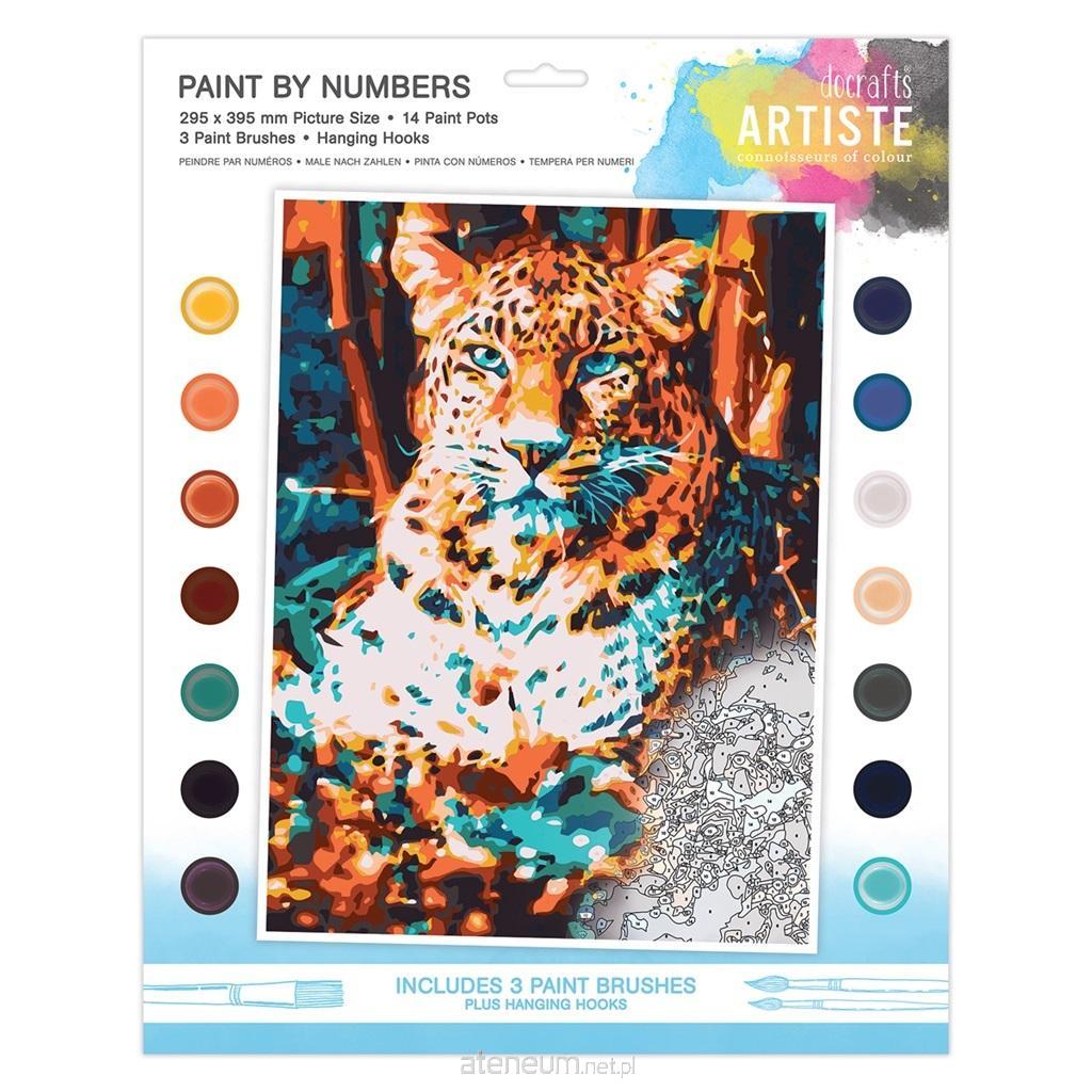 Zestaw zawiera: tekturowe podobrazie 395 x 295 x 2 mm, 14 pojemników z farbą akrylową i 3 pędzelki.
