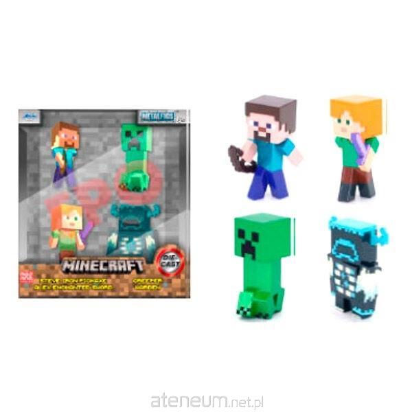 Zestaw czterech metalowych figurek Minecraft o wysokości 6,5 cm.