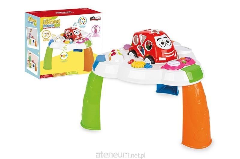 W zestawie: stolik, auto/sorter, 10 geometrycznych klocków, ruchome zębatki, obrotowa układanka - dopasuj obrazki, telefonik ze światłem i dźwiękiem, wym. Zabawki: 48 x 50 x 38 cm., Wym. Opk: 16,5 sz x 40 cm., 12m+