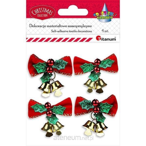 Dekoracje samoprzylepne 3D - materiałowe kokardy welurowe z dekoracją i złotymi dzwonkami ok. 50 x 40 mm, czerwone 4 sztuki.
