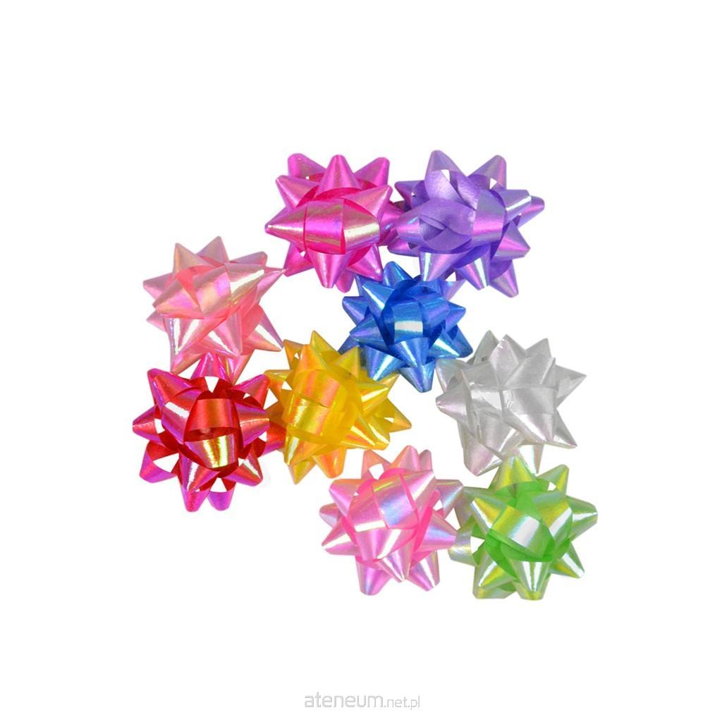 Kokardki dekoracyjne w różnych kolorach. Każda rozetka zawiera element samoprzylepny ułatwiający natychmiastowe przymocowanie do powierzchni. Wykonane z tworzywa sztucznego. Wymiar pojedynczej kokardy to 2,5 cm. W opakowaniu znajduje się 9 sztuk.