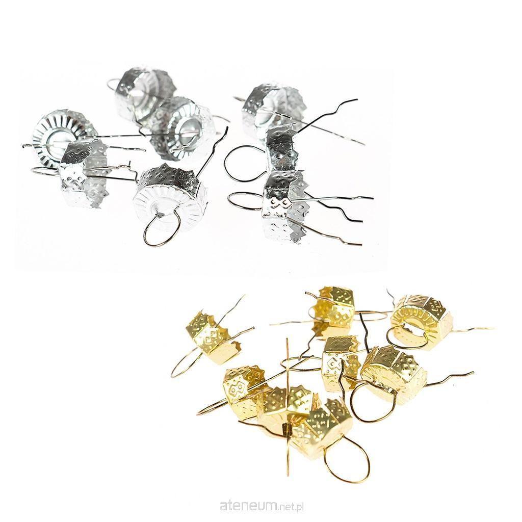 Zawieszki metalowe "wbijane" do bombek i dekoracji styropianowych. Wymiar zawieszki: długość 2,5 cm, średnica oczka 8 mm.