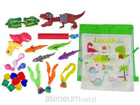 Zestaw Zabawek Do Nurkowania Dinozaur Zestaw ten to doskonały sposób na połączenie frajdy i nauki podczas zabawy w wodzie. Oferuje on mnóstwo możliwości, aby dzieci mogły czerpać radość z pływania, doskonalić umiejętności nurkowania i rozwijać zdolności manualne. W jego skład wchodzi różnorodna kolekcja elementów, która zapewnia różnorakie i angażujące doświadczenia. Cztery podłużne, kolorowe rybki, wykonane z gumy opadają na dno basenu stanowiąc wyzwanie do zanurzania i wyławiania. W zestawie są również niezbędne dla małego nurka okularki z motywem dinozaura. Są one w poręcznym opakowaniu o wymiarach : 19 cm x 8 cm x 5 cm. Tuż obok okularków, w zestawie jest też pistolet na wodę - pompka z małą figurką dinozaura oraz pistolet na wodę w kształcie dinozaura, co urozmaica zabawę w basenie. 3 kolorowe, podwodne 'kwiaty' pięknie falują na dnie basenu, a gwizdki umożliwiają organizację prawdziwych zawodów na łowienie podwodne na czas! Wyjątkowym elementem zestawu jest dinozaur o wymiarach 24 cm x 9 cm x 5 cm, dzięki któremu można łapać różne zabawki z wody, poprzez pociągnięcie za odnóże prehistorycznego przyjaciela. Osiem różnokolorowych, plastikowych kamieni, zachęca dzieci do eksplorowania i kreowania własnych gier. Zestaw ten nie tylko dostarcza rozrywki, ale także pomaga w rozwijaniu umiejętności motorycznych, koordynacji ruchowej i koncentracji. Jest zapakowany w worek z motywem dinozaura, który maluchy mogą nałożyć na plecy i zabrać swój zestaw na podróż. Wykonany z trwałego plastiku, sprawia, że jest odpowiedni do użytku w wodzie. Nurkowanie oraz pływanie staje się teraz fascynującą i edukacyjną przygodą, która łączy naukę z radością i aktywnością fizyczną. Elementy zestawu: - 4 kolorowe, podłużne ryby - pistolet na wodę - pompka - pistolet na wodę - dinozaur - 3 kolorowe kwiaty wodne - 2 gwizdki - okulary do nurkowania - 8 różnokształtnych kamieni - dinozaur do łowienia - worek Wymiary opakowania: 27 cm x 34 cm x 10 cm Posiada certyfikat CE, ponadto jest zgodny z normą EN71. Zabawka przeznaczona jest dla dzieci powyżej 3 roku życia.
