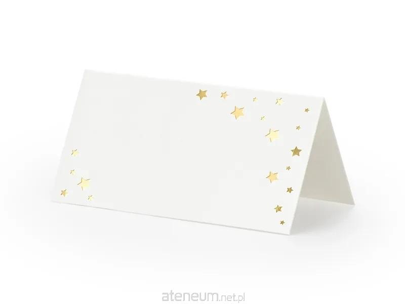 "Wizytówki na stół Let's Celebrate wykonane z papieru w kolorze białym ze złotymi gwiazdkami, wymiary ok. 9,5 x 5,5 cm. (1 op. / 10 szt.)"