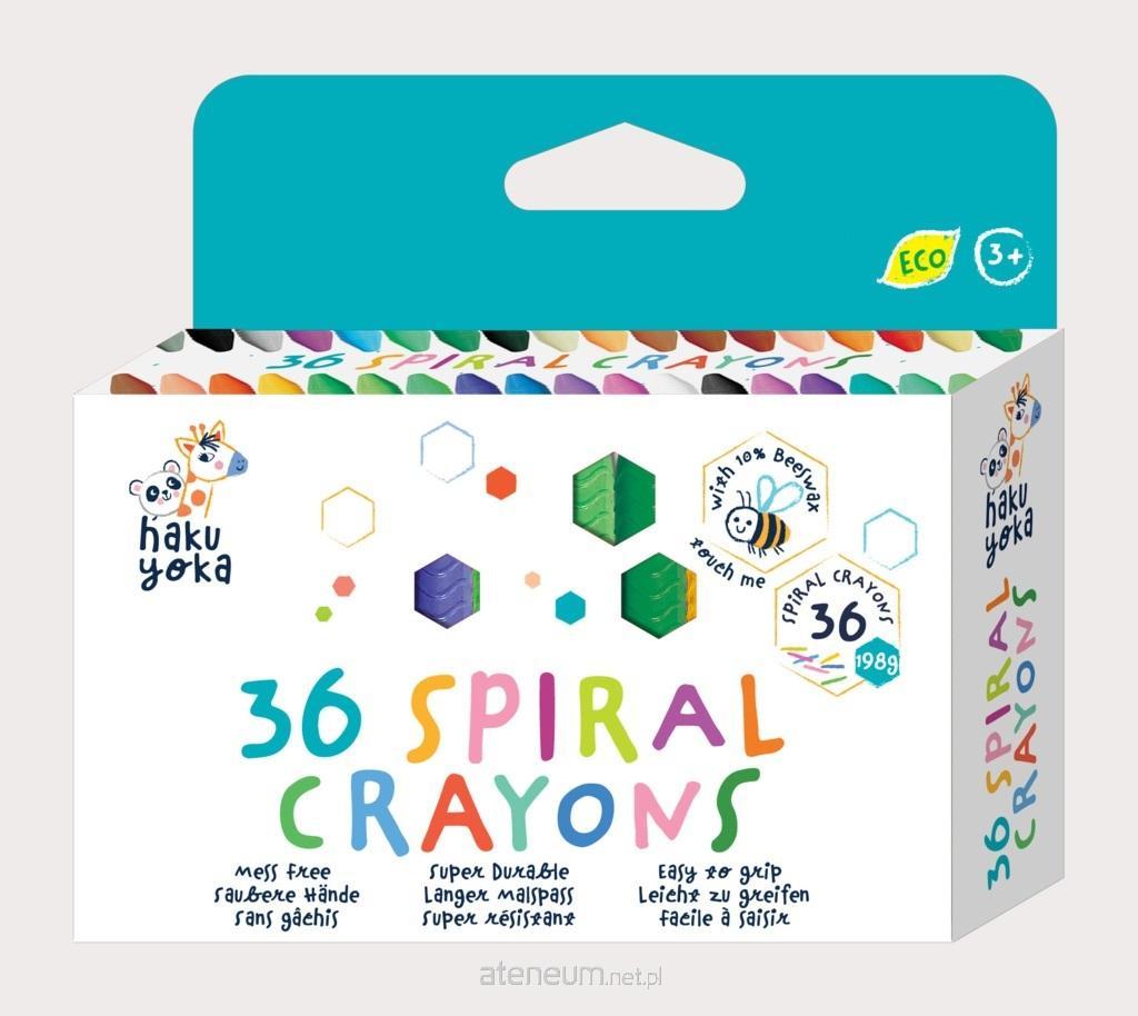 Dzięki specjalnej powierzchni i kształtowi kredki Haku Yoka zapewniają maluchom wygodny i pewny chwyt.Eko kredki wykonane są z 10% wosku pszczelego, a ich opakowania wykonane są z papieru FSC.Nie pozostawiają plam.Opakowanie zawiera 36 kredek w różnych kolorach.