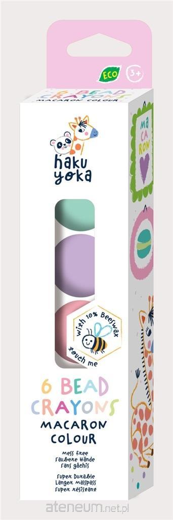Dzięki specjalnej powierzchni i kształtowi kredki Haku Yoka zapewniają maluchom wygodny i pewny chwyt.Eko kredy wykonane są z 10% wosku pszczelego, a ich opakowania wykonane są z papieru FSC.Nie pozostawiają plam.Opakowanie zawiera 6 kredek koralików w pastelowych kolorach.