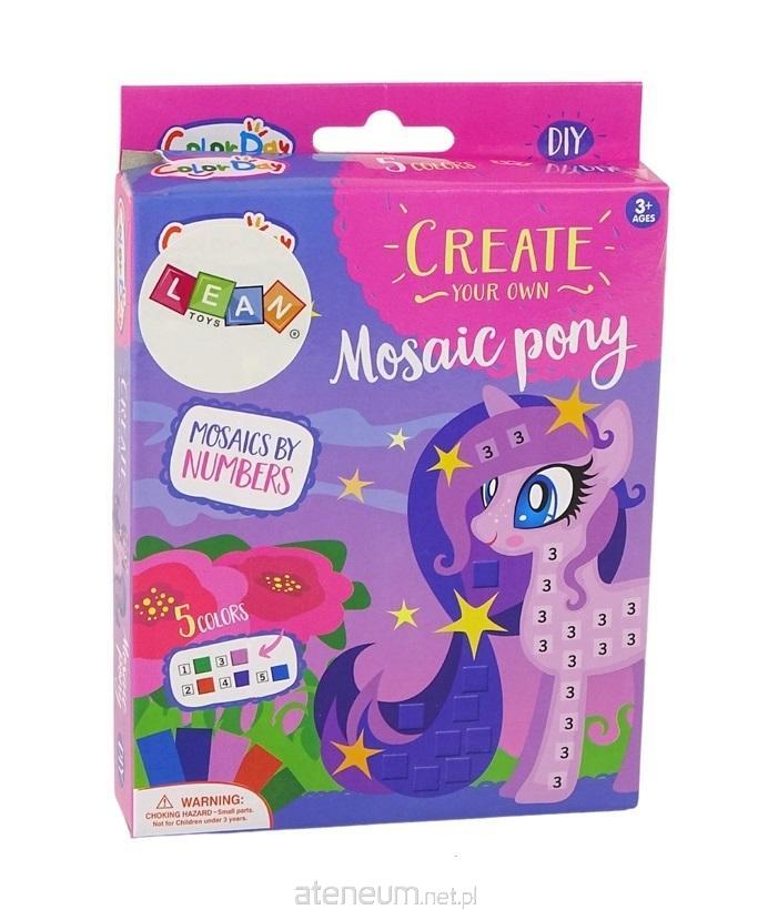 Mozaika z numerkami, na które dziecko przykleja kolorowe naklejki w odpowiedni kwadracik.