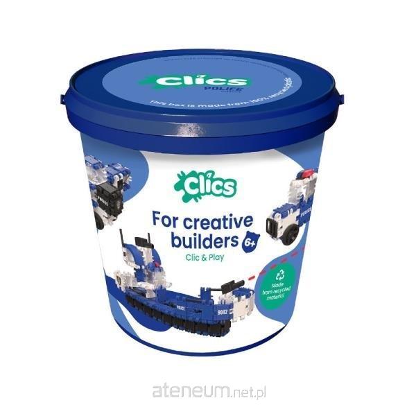 CLICS to edukacyjno-konstrukcyjne klocki dla dzieci od 6 roku życia zapewniające godziny wspaniałej zabawy w budowanie. W opakowaniu znajdziemy 135 elementów klocków, które umożliwiają małym konstruktorom zbudowanie aż ośmiu rodzajów pojazdów Policji. Klocki edukacyjno-konstrukcyjne świetnie sprawdzą się jako prezent dla każdego małego miłośnika budowania. Konstruowanie pojazdów rozwija umiejętności manualne dziecka oraz zdolność logicznego myślenia. Dodatkowo pozytywnie wpływa na rozwój wyobraźni i kreatywności najmłodszych. Wszystkie elementy zestawu zostały umieszczone w praktycznym, plastikowym wiaderku z rączką, dzięki czemu dziecko z łatwością może je przenosić. Cechy produktu: - klocki zwiększają sprawność umysłową, co przekłada się na kreatywność najmłodszych, - pobudzają wyobraźnię oraz pozytywnie wpływają na rozwój dziecka, - świetny prezent dla dzieci uwielbiających budowanie. Zawartość opakowania: - 135 elementów klocków, - 8 planów budowy pojazdów.