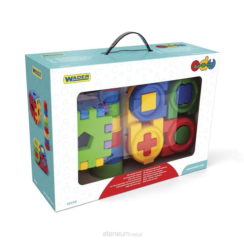 Trzy pomoce edukacyjne w jednym zestawie, a każda z nich rozwija inne umiejętności dzieci w wieku 1-3 lat, które są kluczowe dla ich dalszego rozwoju. W skład zestawu wchodzi sorter, wieża edukacyjna oraz domino puzzle. Sorter składa się z 6 różnokolorowych ścianek z otworami na klocki w kształcie koła, trójkąta, rombu, krzyżyka, pięciokąta i gwiazdki oraz 6 klocków pasujących do otworów w ściankach. Ułożenie ścianek i zabawa produktem, wymaga od dziecka zaangażowania wielu zmysłów, użycia rączek a tym samym ćwiczenia sprawności manualnej. Podczas zabawy maluch trenuje również zdolność logicznego myślenia. Kolorowa wieża składająca się z ośmiu kubeczków daje możliwość kreatywnej i mądrej zabawy, bo kubeczkami można bawić się na wiele sposobów np. stawiać wieżę, wkładać jeden do drugiego. W trakcie budowania dziecko uczy się rozpoznawania kolorów, odróżniania wielkości przedmiotów, poprawia koordynację ruchową i precyzję ruchów. Trzecia pomoc edukacyjna - domino puzzle - składa się z 4 elementów o wyrazistej, przyciągającej wzrok kolorystyce, które z jednej strony posiadają wypukły kształt, a z drugiej otwór. Zadaniem malucha jest operowanie wszystkimi czterema elementami w taki sposób, aby poprawnie dopasować kształty do otworów. W tej zabawie kluczowe jest trenowanie logicznego myślenia, koncentracji i pamięci jak również motoryki małej. Zabawki wchodzące w skład kompletu uzupełniają się wzajemnie, tworząc jeden kompleksowy zestaw zapewniający dziecku ciekawą i różnorodną zabawę oraz rozwijają wiele umiejętności i zmysłów. Wpływają na prawidłowy przebieg rozwoju i integracji sensorycznej, co decyduje o prawidłowym rozwoju dziecka. W skład zestawu wchodzą trzy różne zabawki edukacyjne: sorter, wieża edukacyjna oraz domino puzzle Dzięki zabawce dzieci mają możliwość rozwijania kluczowych umiejętności Zabawa zestawem rozwija koncentrację, zmysł logicznego myślenia, wyobraźnię przestrzenną i precyzję Zabawka przeznaczona dla dzieci 1+.