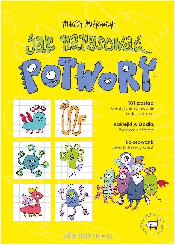 W tej książce znajdziesz aż 101 postaci do narysowania! Potwory są śmieszne i mają śmieszne imiona. Panikałka, Horroracy, Drzesiek, Ledwodysio i Czaszynka wraz z innymi postaciami zabierają w fantastyczną podróż w świat wyobraźni. To super przygoda dla każdego dziecka (i dla wielu dorosłych)! Zabawa w rysowanie krok po kroku to także okazja do tworzenia własnych postaci, wymyślania dla nich imion i historyjek z ich udziałem. Fantazja nie zna granic! Ponadto w środku książki znajdziesz kolorowanki i arkusze naklejek z literkami. Rysowanie rozwija małą motorykę, ćwiczy spostrzegawczość i pobudza wyobraźnię. Z kolei zabawa literkami to nauka pierwszych słów. A tak w ogóle to świetna zabawa dla całej rodziny!