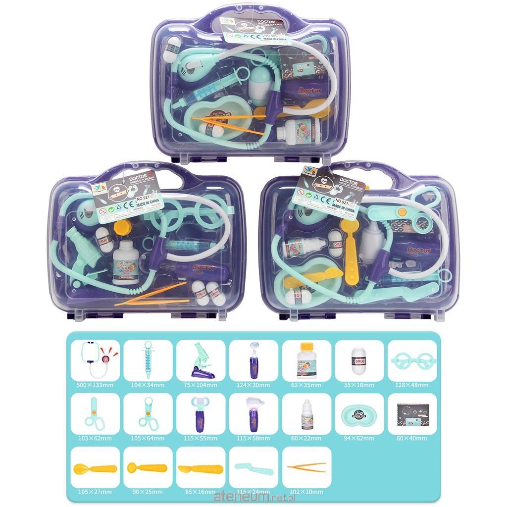 12 elementowy zestaw lekarski w walizce. Zestaw zawiera wszystkie niezbędne akcesoria do zabawy w lekarza.