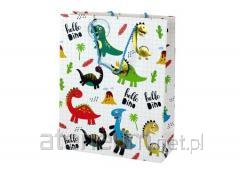 Torba prezentowa w kratkę Dinozaury 32x26 x10cm