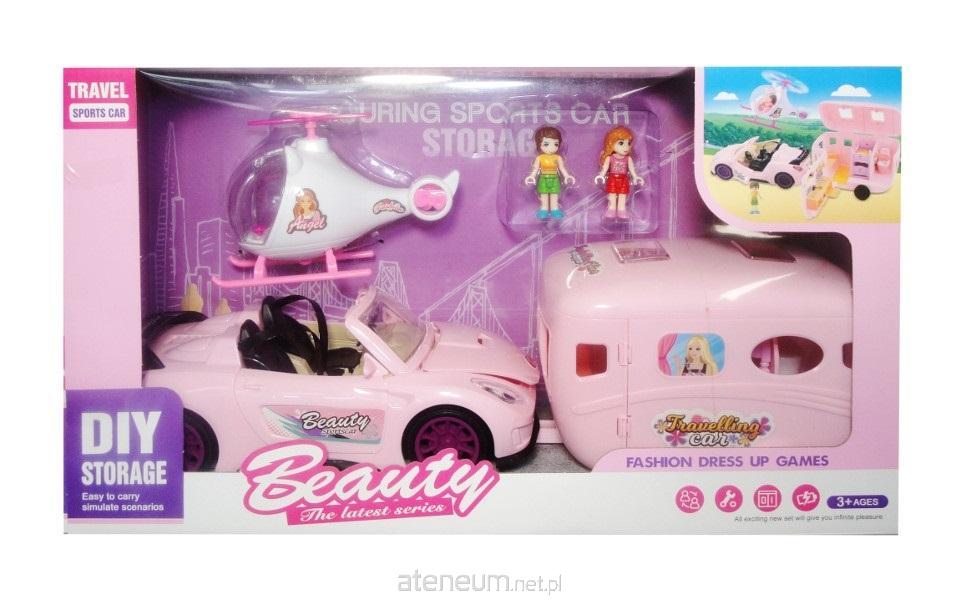 Plastikowe, auto dla lalki. Zabierz ją w niezwykłą podróż! Auto posiada otwierane drzwi, a po naciśnięciu guzika na masce świeci światełkiem. W zestawie także przyczepa kempingowa (w której znajduje się łóżko piętrowe, sofa, toaleta i kuchenka), 2 lalki oraz helikopter.#&Zabawka działa na baterie typu AG13. Baterie znajdują się w zabawce. #&Całość spakowana w kartonowe pudełko z przejrzystym okienkiem.#&Produkt przeznaczony dla dzieci powyżej 3 lat.#&Podane wymiary są wymiarami opakowania.