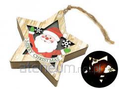 Zawieszka świąteczna drewniana ze światłem LED 12x11x2cm.