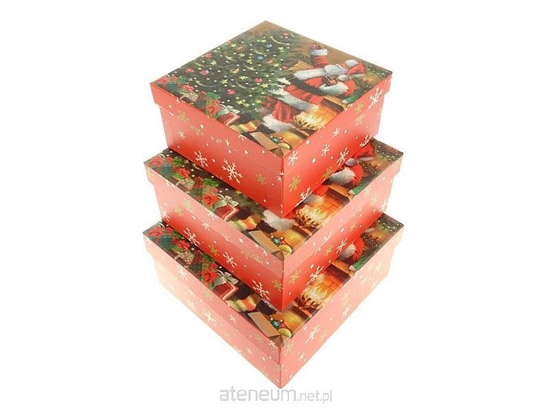 zestaw 3 pudełek prezentowych z motywem świątecznym, S-15,5x15,5x7,5cm; M-18x18x8,5cm; L-20x20x9,5cm.