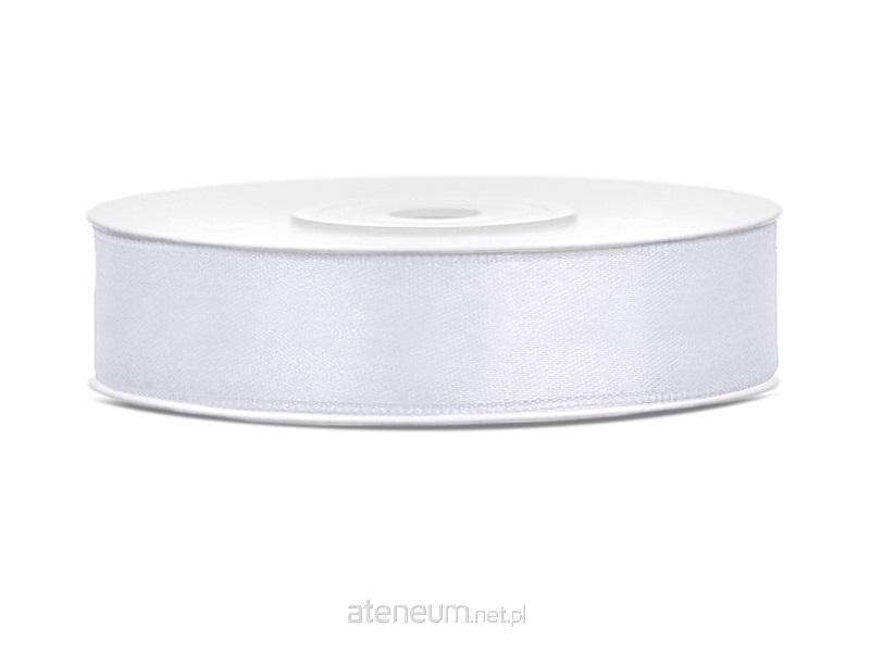 Tasiemka satynowa w kolorze białym, szerokość 12 milimetrów, długość 25 metrów.(1 szt. / 25 mb.)