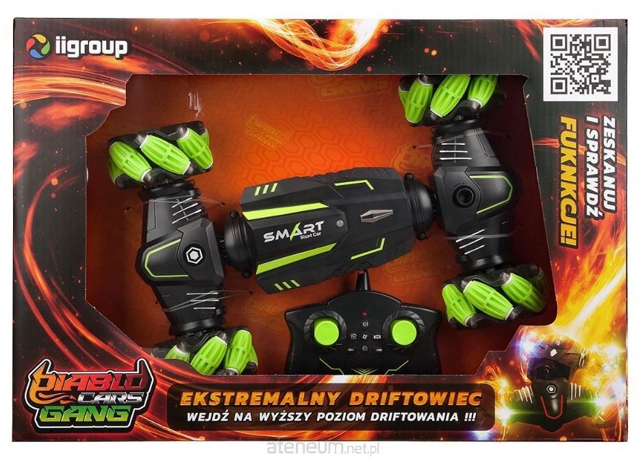 EKSTREMALNY DRIFTOWIEC to dwustronny samochód zdalnie sterowany, który potrafi wykonywać widowiskowe drifty, pełny obrót o 360 stopni i dzięki regulowanemu elektrycznie zawieszeniu poruszać się w 2 trybach - terenowym i sportowym. Oświetlenie LED, dźwięki i DYM sprawiają, że jazda jest pełna emocji. Wykorzystaj sztuczkę WIRUJĄCY HURAGAN, przygotuj się na pełen wir akcji i bądź prawdziwym mistrzem driftu.
