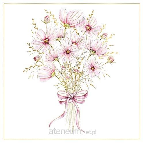 Karnet w formacie 15 x 15 cm. Wydrukowany na wysokiej jakości papierze. Karnet z tłoczonymi wzorami na całej powierzchni oraz złoceniem. W zestawie kolorowa koperta.