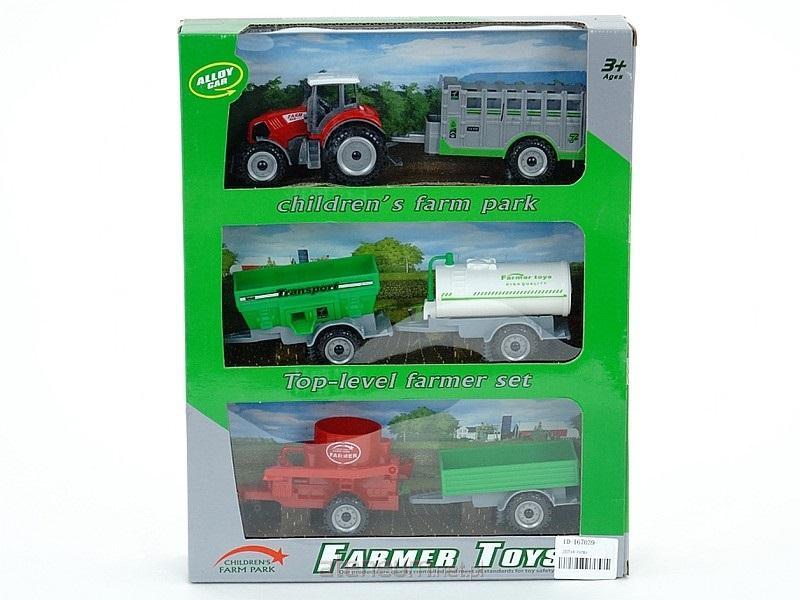 Traktor metalowy z 3 maszynami rolniczymi