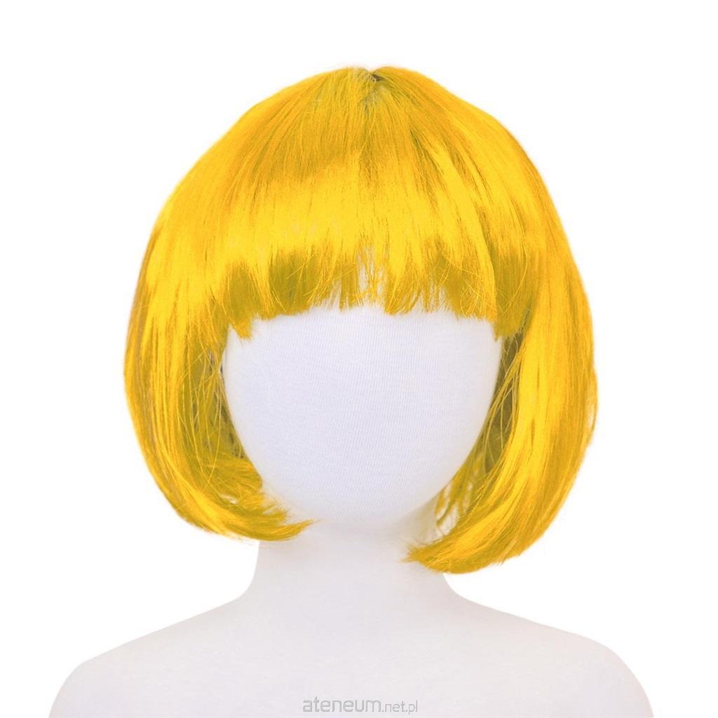 Peruka wykonana z włosów syntetycznych w kolorze żółtym. Fryzura w stylu cięcia ""bob"" z grzywką. Dopełnienie stylizacji, przebrania na bal karnawałowy, sylwestrowy, halloween. Długość włosów to około 25 cm. Peruka w rozmiarze uniwersalnym.