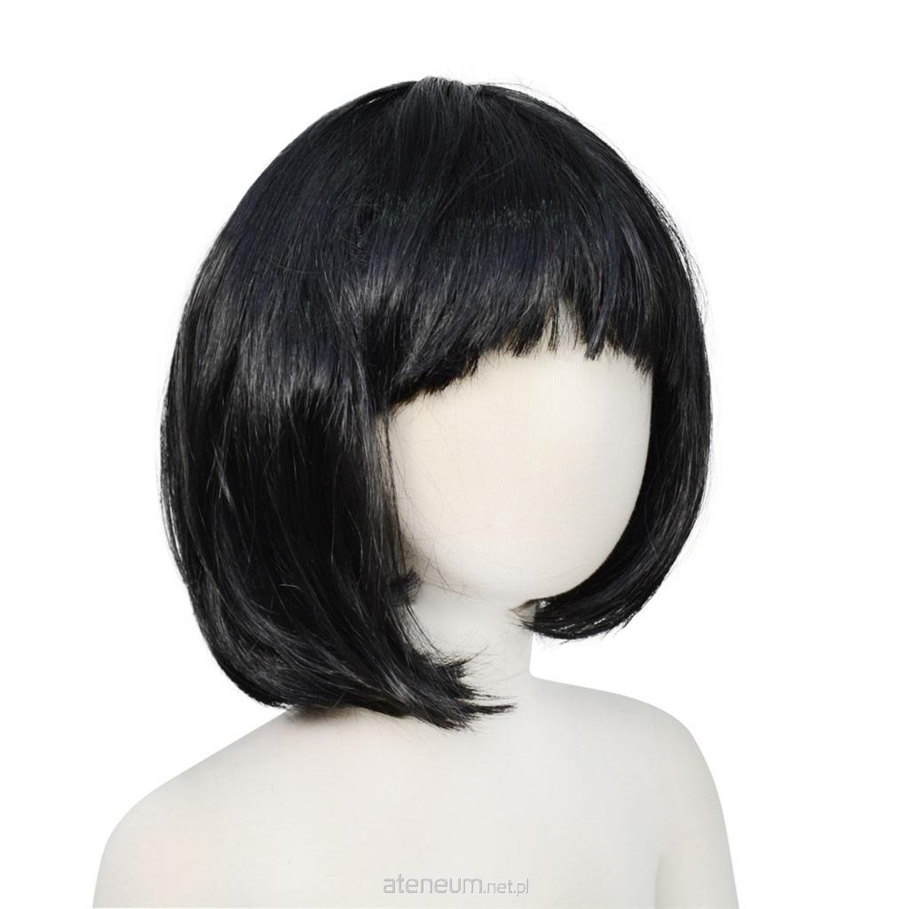 Peruka wykonana z włosów syntetycznych w kolorze czarnym. Fryzura w stylu cięcia ""bob"" z grzywką. Dopełnienie stylizacji, przebrania na bal karnawałowy, sylwestrowy, halloween. Długość włosów to około 25 cm. Peruka w rozmiarze uniwersalnym.