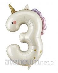 Balon foliowy Cyfra 3 Jednorożec 93cm