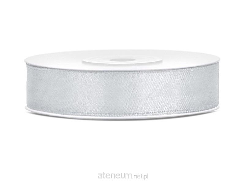 Tasiemka satynowa w kolorze srebrnym, szerokość 12 milimetrów, długość 25 metrów.(1 szt. / 25 mb.)
