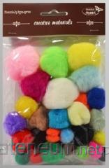 Miękkie i puszyste pompony akrylowe w pięknych, intensywnych kolorach. Opakowanie zawiera miks 30 szt. pomponów wielkości 25-40 mm w kolorystyce intensywnej.