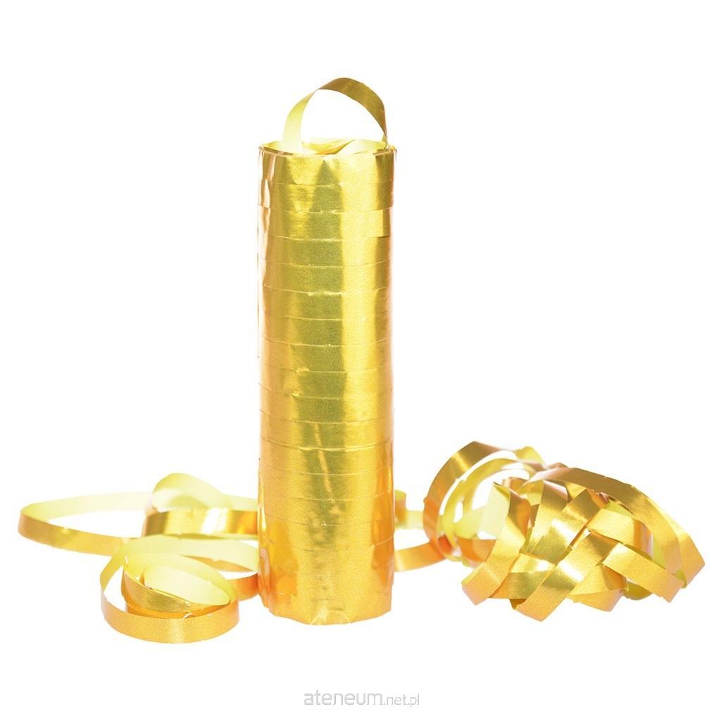 Serpentyny połyskujące, długość rolki 12,5 cm, średnica 4 cm, 18 krążków. Dostępne w dwóch kolorach srebrnym lub złotym.