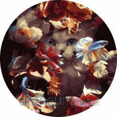 Malowanie po numerach okrągłe - Kot w rybkach 40cm